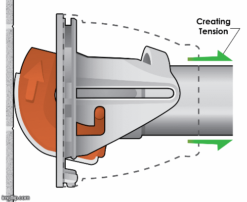 I started looking at other mechanisms that could generate outward tension. After much research and several concepts, I fabricated a prototype that used CAM mechanism rollers on ether end of the rod. These rollers, when downward force was applied, pushed on to the wall surface with equal or in some cases multiplied force. By simply pulling down on the rod the opposing CAM mechanisms create tension and lock into place. We called this innovation Power Lock Technology.
